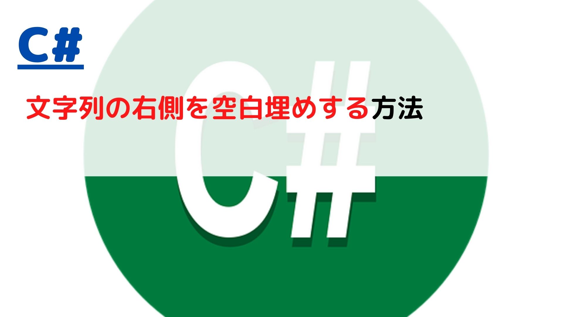 文字列(string)の右側を空白埋めするには、PadRight()を使います。