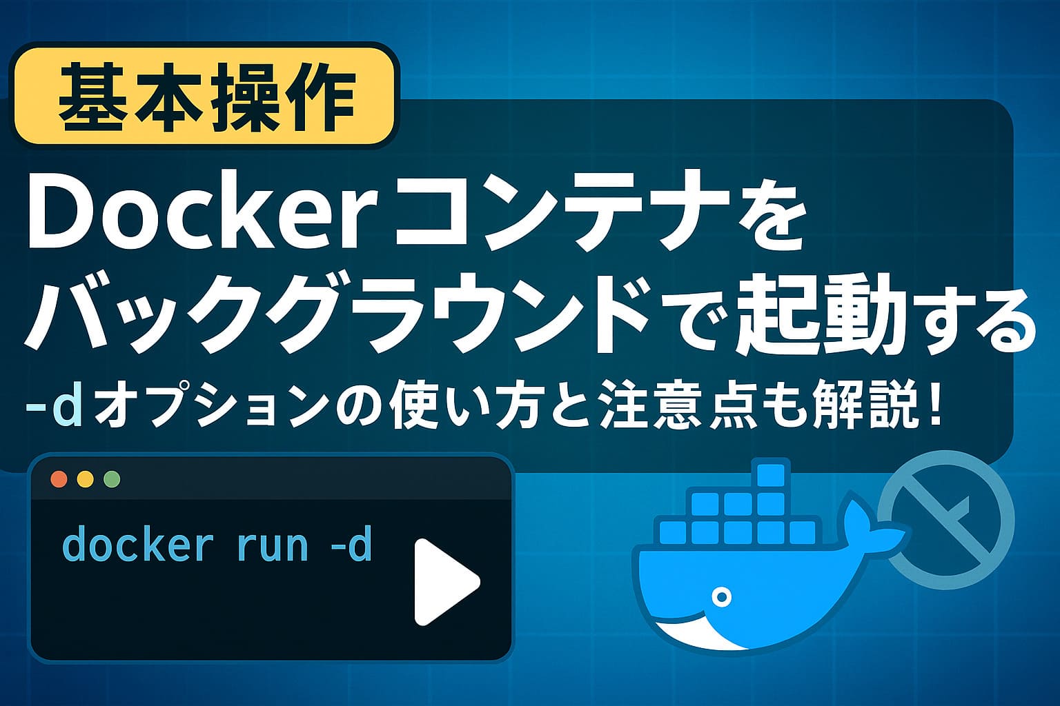 この記事では、Dockerコンテナをバックグラウンド(非対話モード)で起動する方法と、よくある注意点や確認方法も含めてわかりやすく解説します。