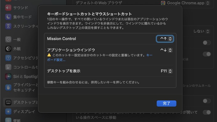 - 「Mission Control」の設定を確認