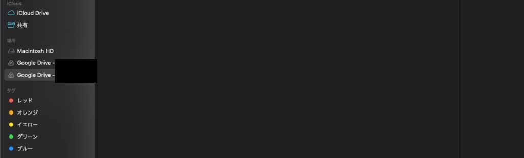 インストールが完了すると、Finderのサイドバーに「Google ドライブ」が自動的に追加されます。