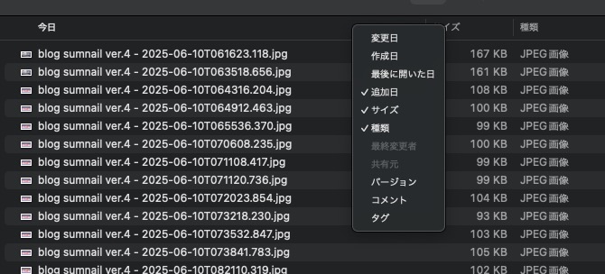 でリスト表示にする- 列ヘッダーを右クリックして必要な列のみ表示