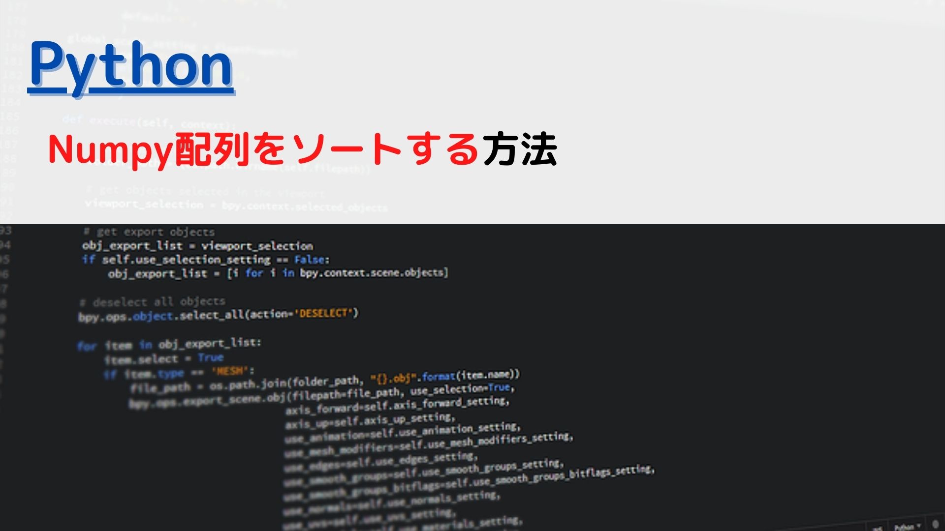 Numpy配列(Array)を昇順にソートする方法を紹介します。
