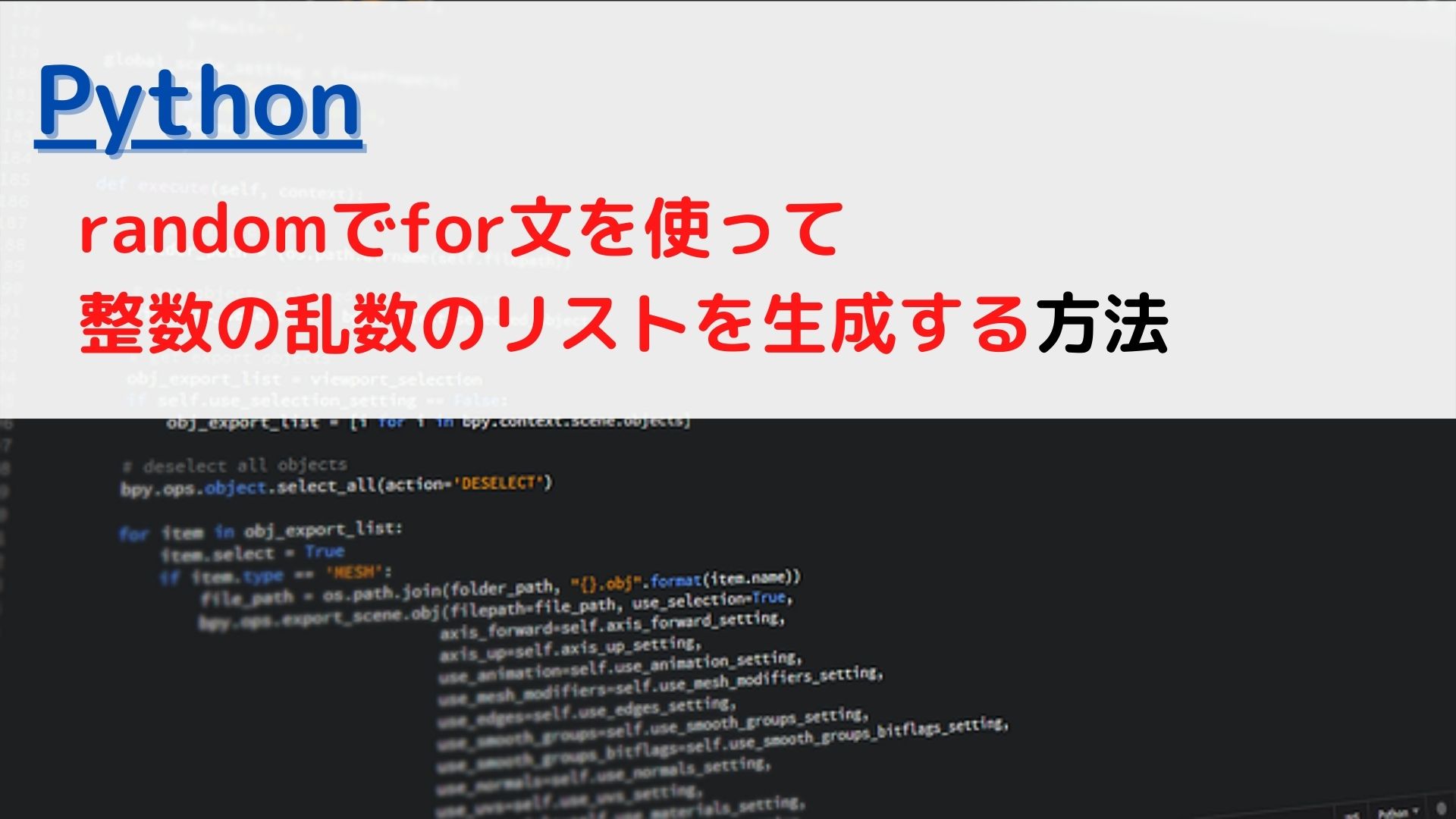 randomでfor文を使って整数の乱数のリストを生成する方法を紹介します。