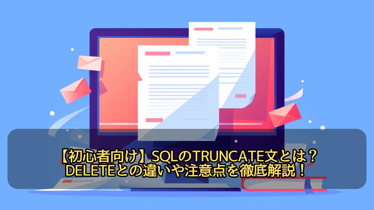 この記事では、TRUNCATEの使い方、特徴、DELETEとの違い、使用時の注意点を初心者向けにやさしく解説します。