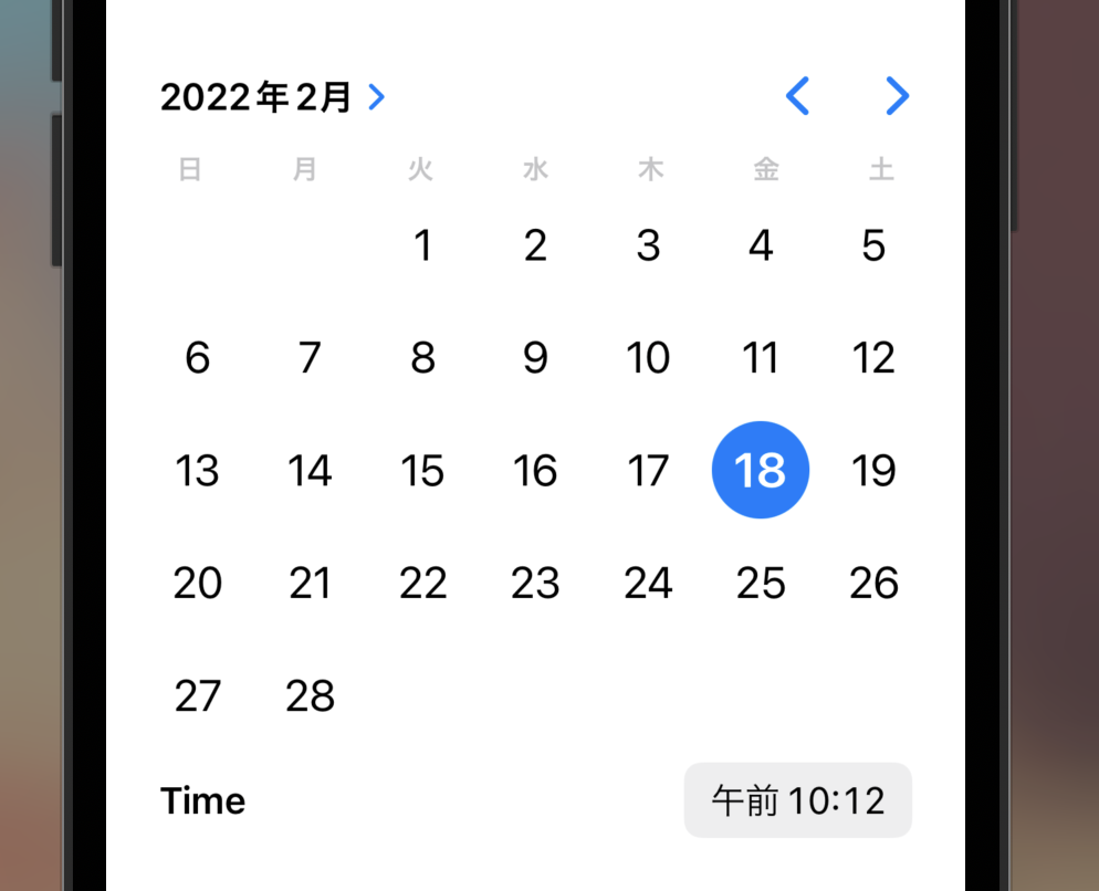UIDatePicker.appearance().backgroundColorに「.clear」を代入することで、DatePickerのデフォルトの背景色を透明にすることができます。