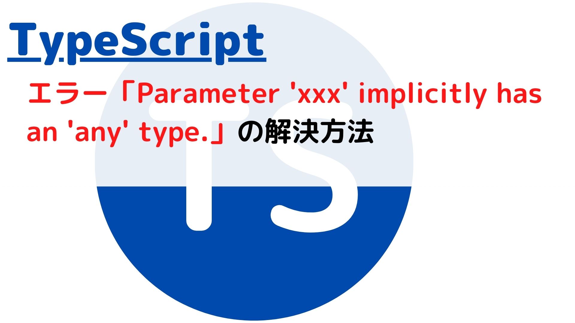 「Parameter ‘xxx’ implicitly has an ‘any’ type.」は、関数の引数の型を明記することで解決できます。