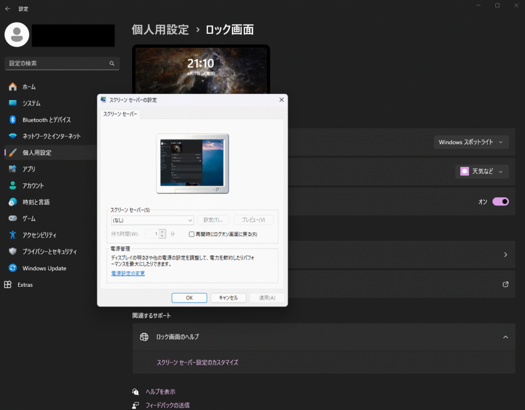 - スクリーンセーバー設定を確認