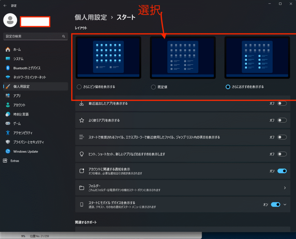 Windows 11でのスタートメニューレイアウト変更方法