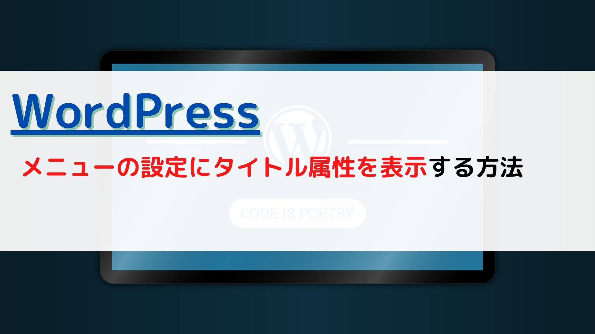 「WordPressでメニューの設定にタイトル属性を表示したい!」